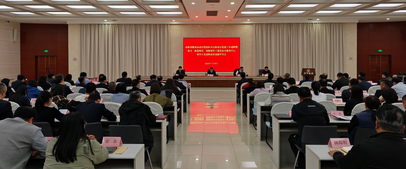 日前,市政务服务办召开2025年度基层党组织书记抓基层党建工作述职暨机关二级巡视员、处级领导干部及综合服务中心领导人员述职述责述廉评议会议。会议聚焦2025年度我市各区和有关市级部门党委书记抓基层党建工作述职评议会议强调的七个需要深入检视思考的问题和四个需要持续用力的工作要求,将深入对照检视、精准查摆问题贯穿述职评议全过程。办机关党委书记、所属事业单位党委书记和机关各处室党支部书记、处长依次现场述职,办党组主要负责同志逐一进行点评,与会人员分层次对评议对象进行了现场测评。市纪委监委驻市政府办公厅纪检监察组有关负责同志到会指导。